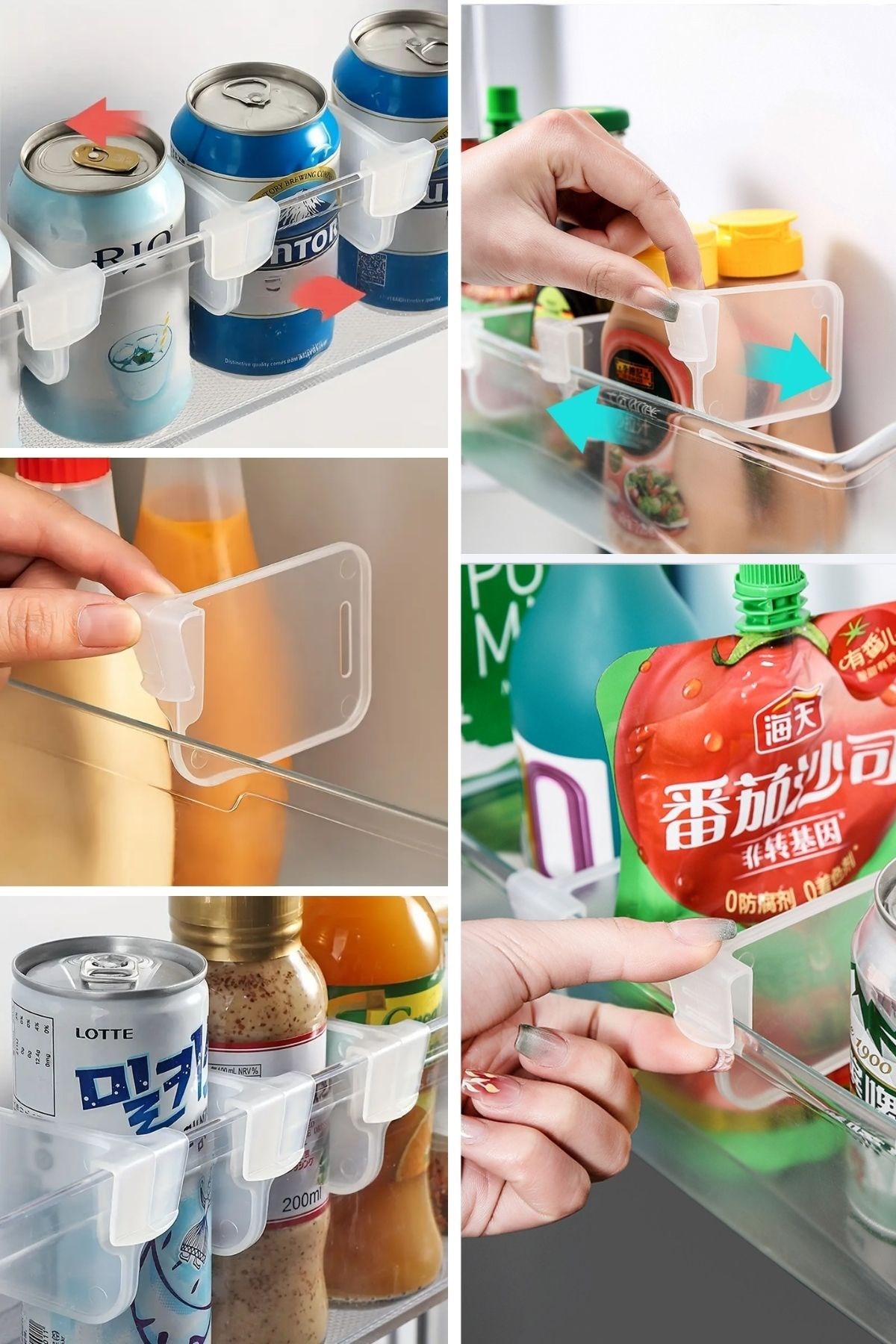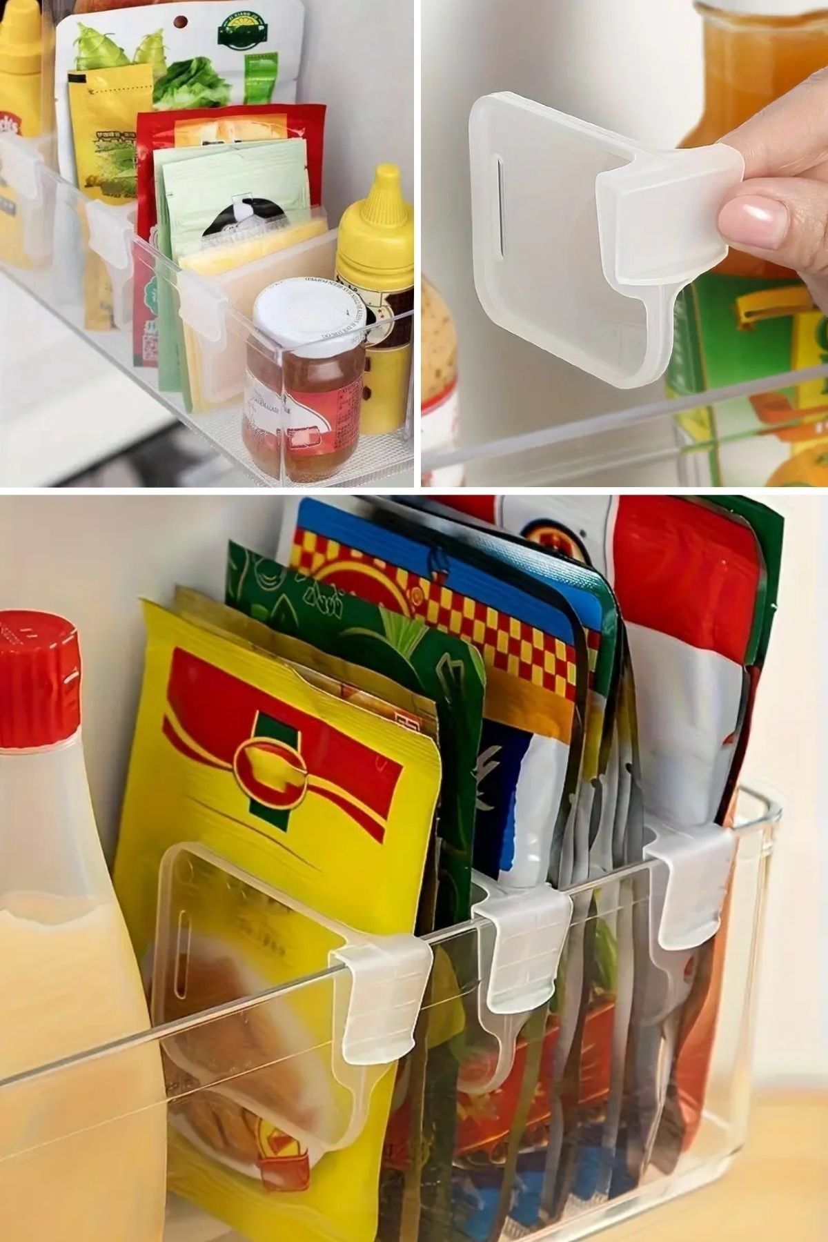 - 10’lu Set: Buzdolabı kapılarında veya raflarda kullanılabilen 10 adet pratik düzenleyici içerir.