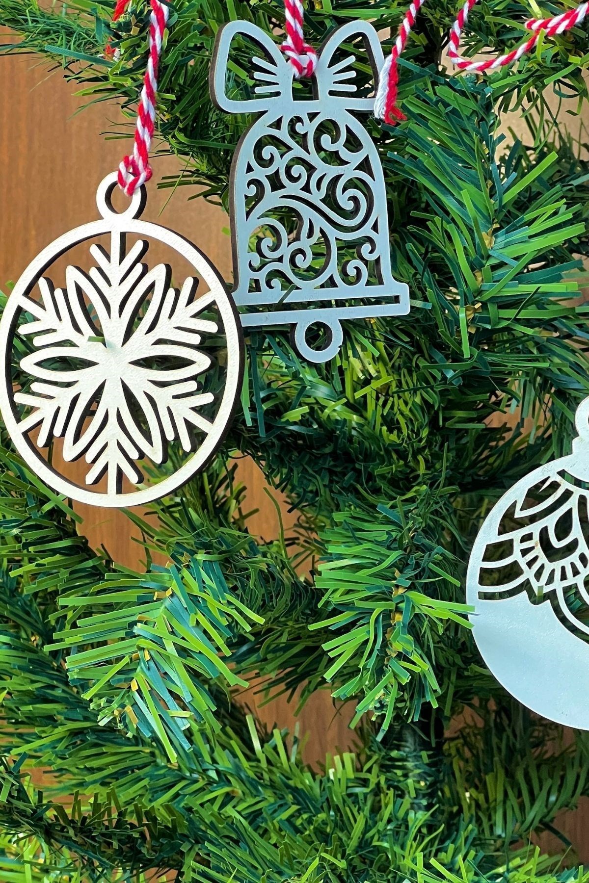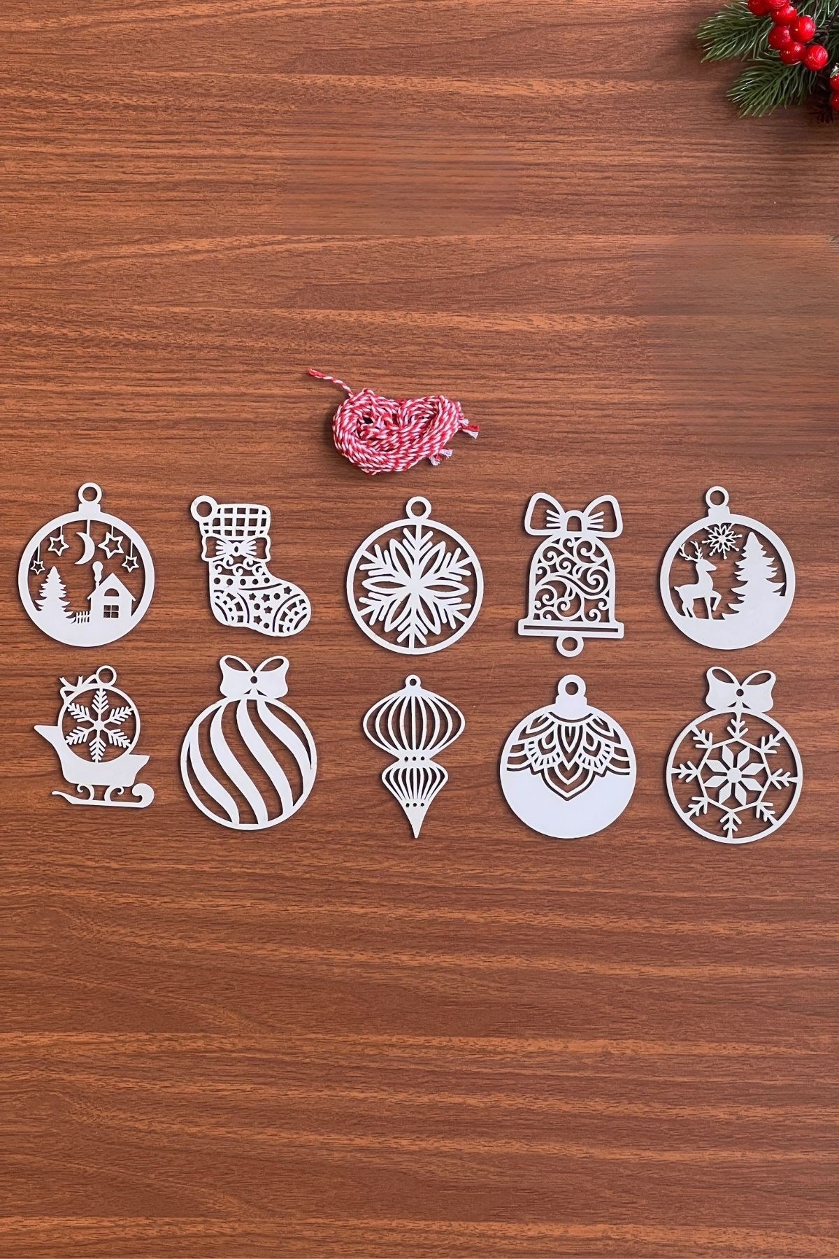 10 Parça Kırmızı Beyaz İpli Karışık Model Ahşap Yılbaşı Ağaç Süsü ????✨