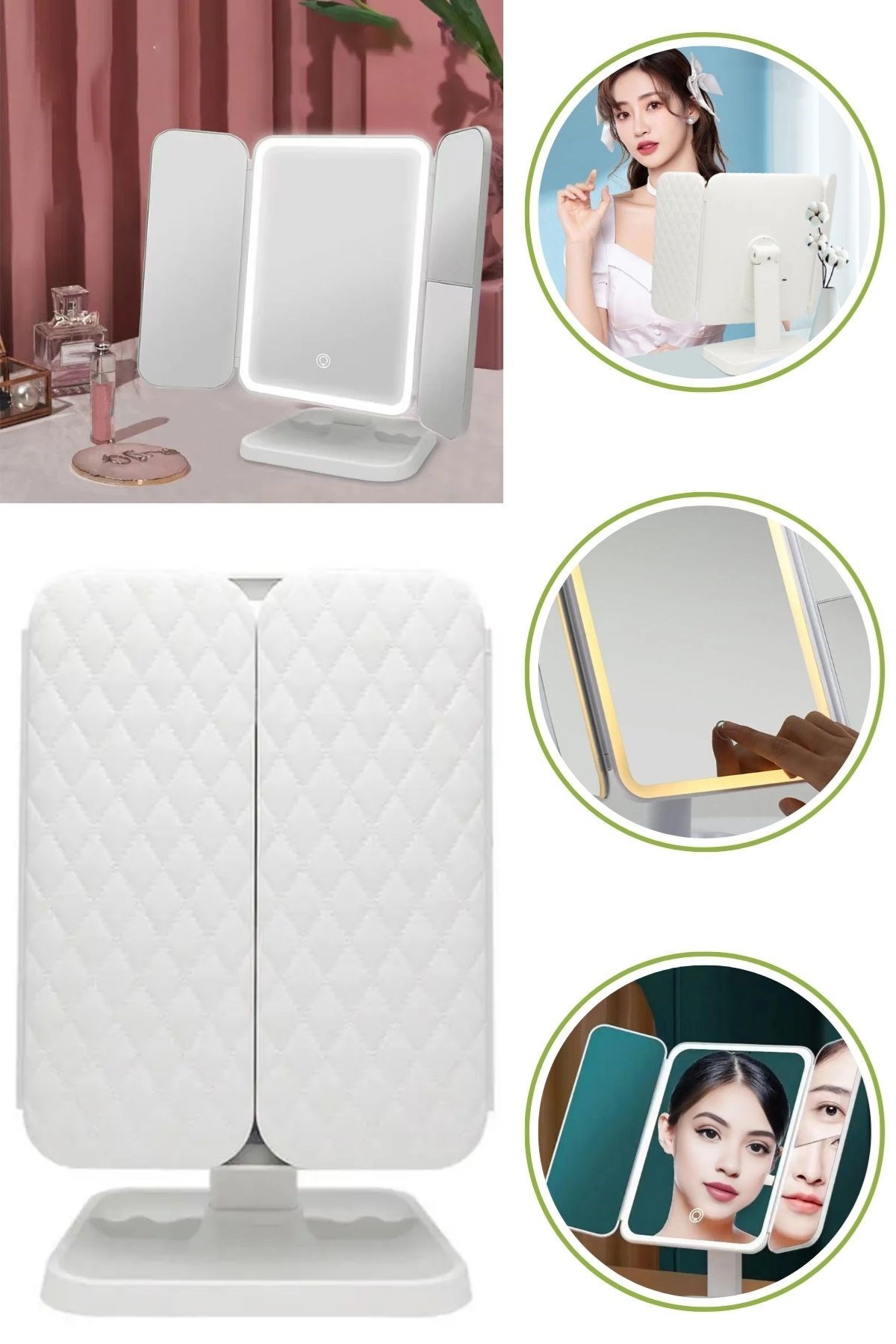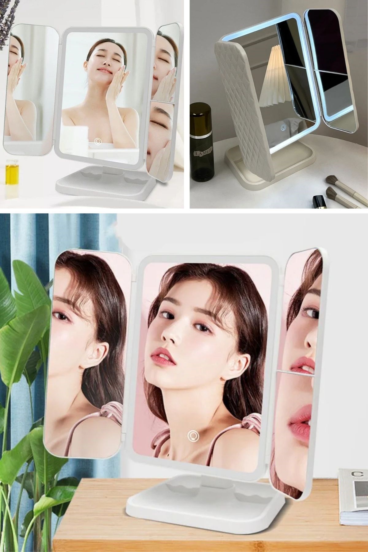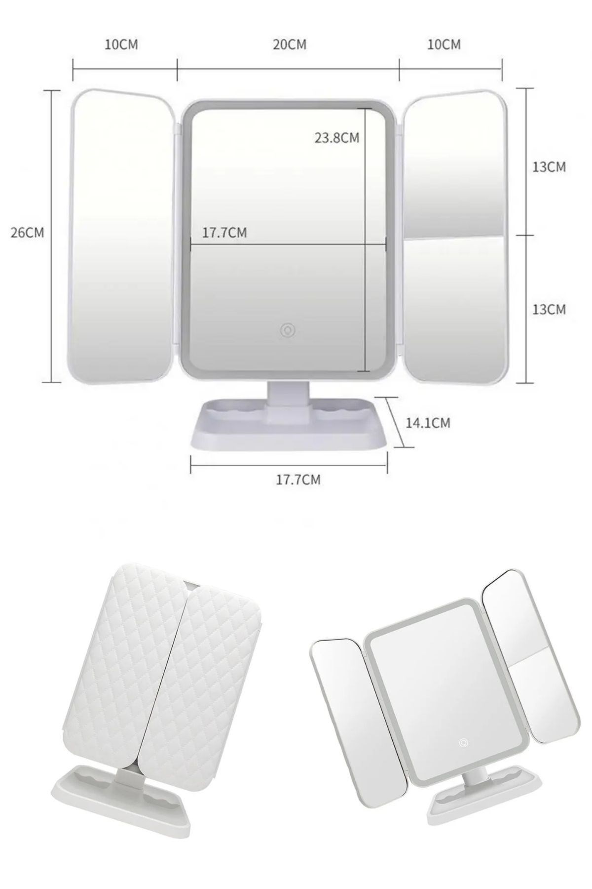 - 3 Farklı LED Aydınlatma Modu: Dokunmatik ekran kontrolü ile kolayca ayarlanabilen 3 farklı ışık modu (doğal ışık, sıcak ışık, soğuk ışık) sunar, böylece makyajınızı her ortamda mükemmel yapabilirsiniz.