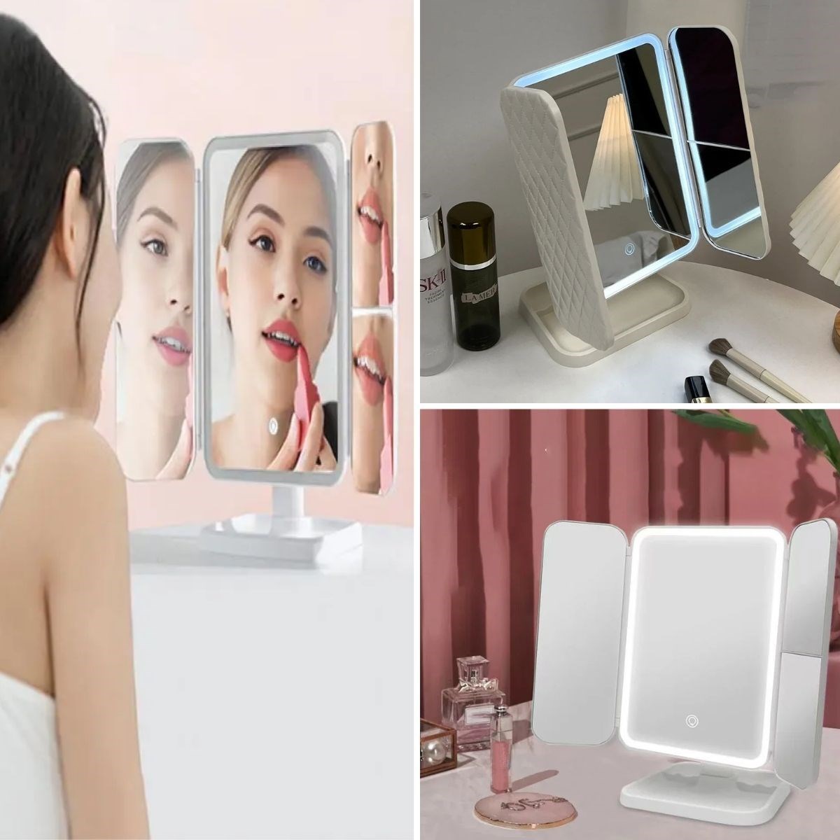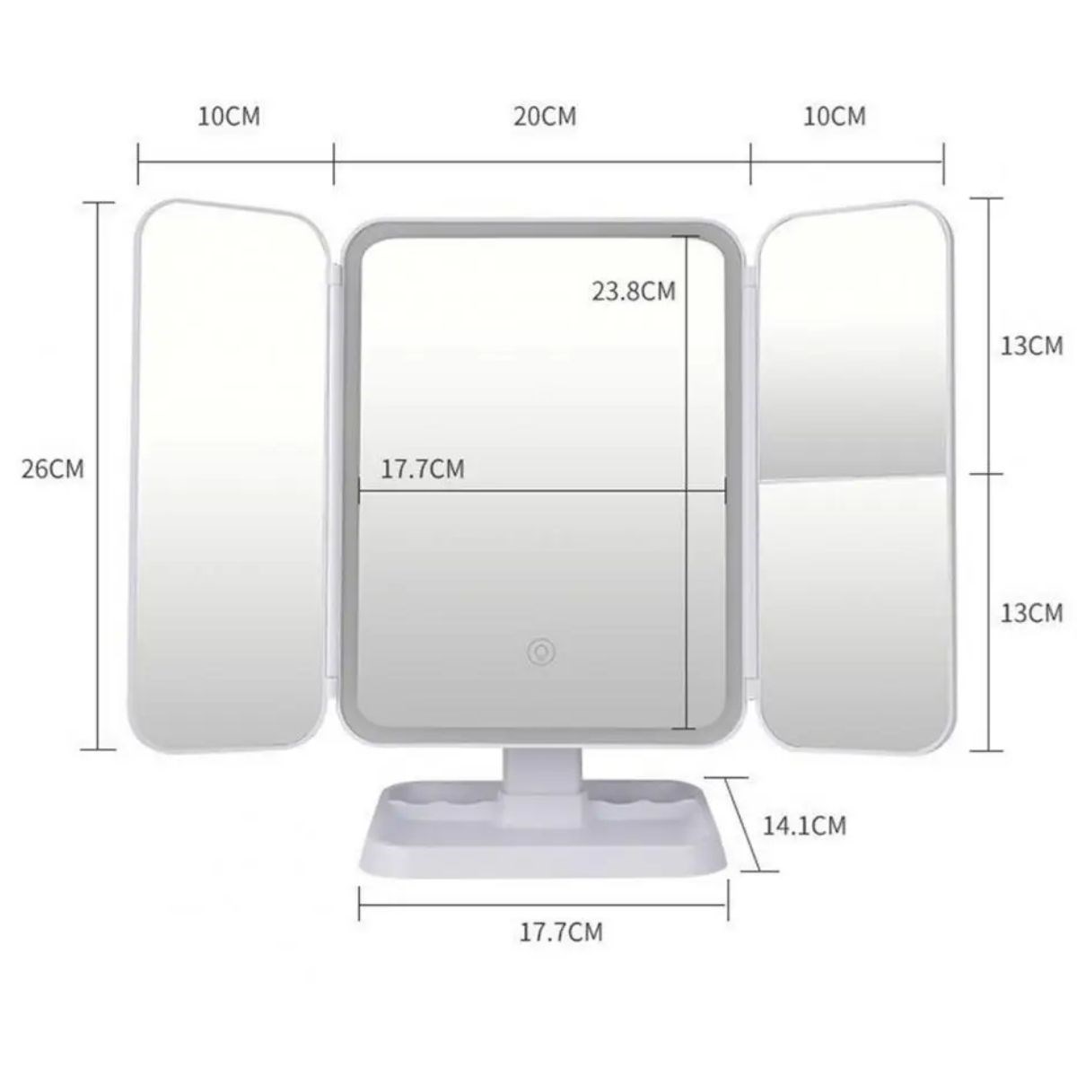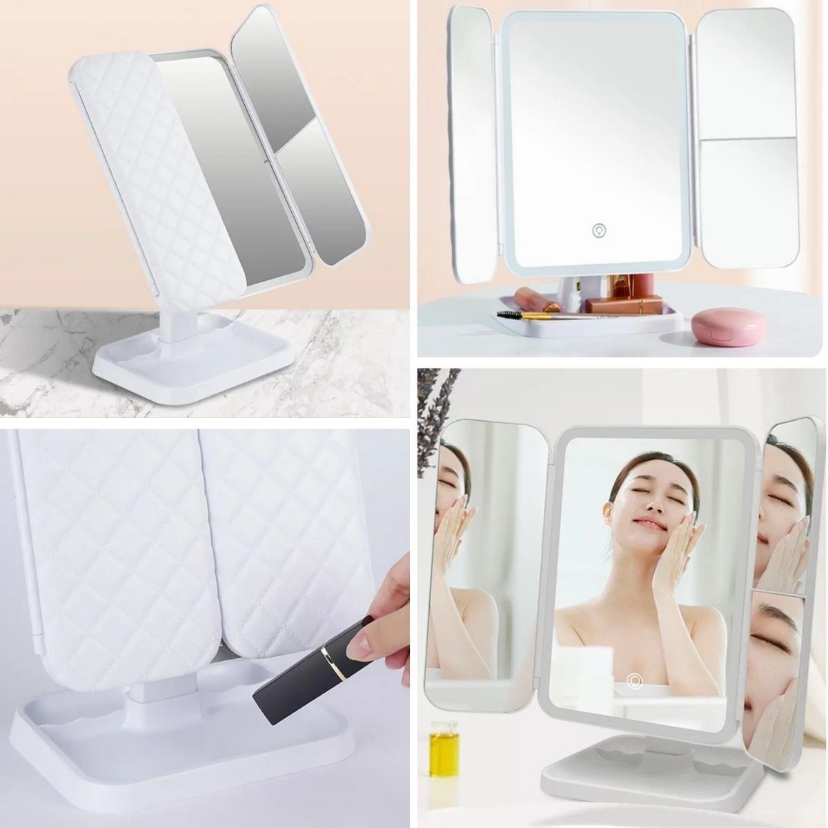 - 3 Farklı LED Aydınlatma Modu: Dokunmatik ekran kontrolü ile kolayca ayarlanabilen 3 farklı ışık modu (doğal ışık, sıcak ışık, soğuk ışık) sunar, böylece makyajınızı her ortamda mükemmel yapabilirsiniz.
