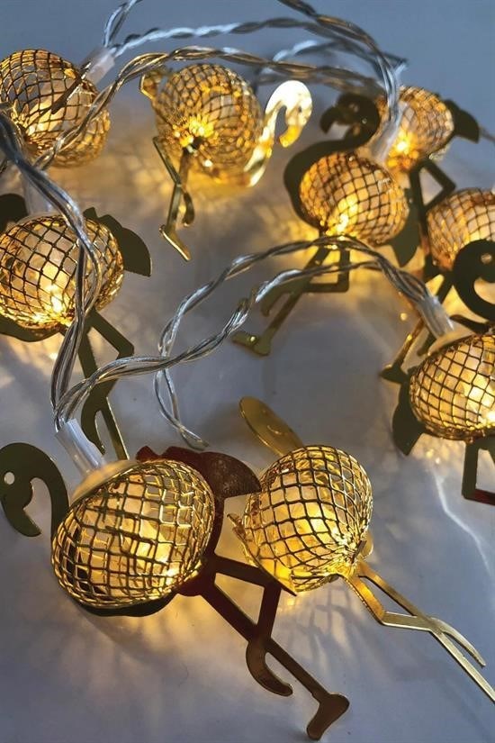 10'lu Dekoratif Metal Flamingo Şerit Led Aydınlatma (2 Metre)