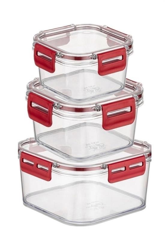 BUFFER® 3'lü Pratik Silikon Contalı Sızdırmaz Kapaklı Sağlam İstiflenebilir Saklama Kapları