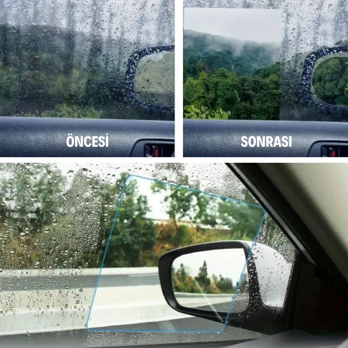 BUFFER® 4 Parça Yan Aynalar ve Yan Camlar İçin Araç Ayna Yağmur Kaydırıcı ve Cam Buğu Önleyici Film Seti ????????