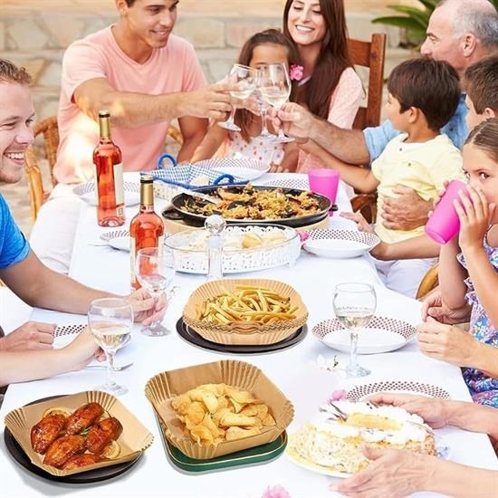 Paket İçeriği: 50 Adet BUFFER® Air Fryer Pişirme Kağıdı Tek Kullanımlık Hava Fritöz Yağ Geçirmez Yapışmaz Gıda Pişirme Kağıdı