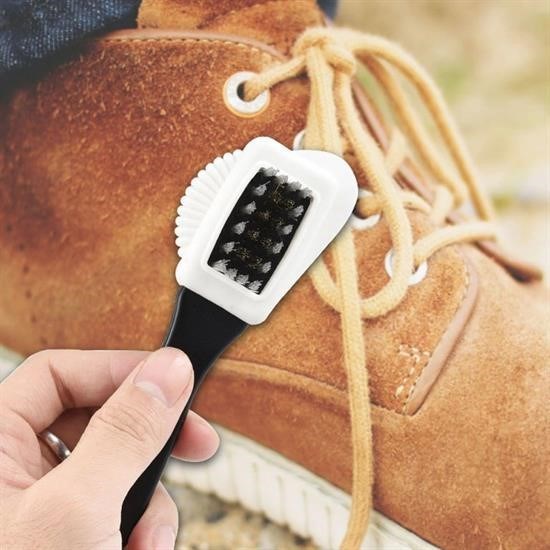 BUFFER® Çift Taraflı Pratik Taşınabilir Süet Nubuk Deri Çizme Bot Ayakkabı Temizleme Bakım Fırçası