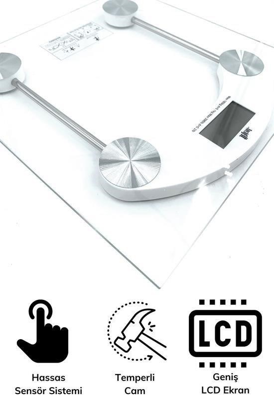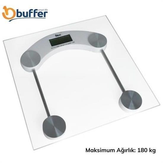 BUFFER® Dijital Kare Cam Baskül Darbelere Karşı Dayanıklı Terazi Yüksek Hassasiyetli Tartı Tf 1052