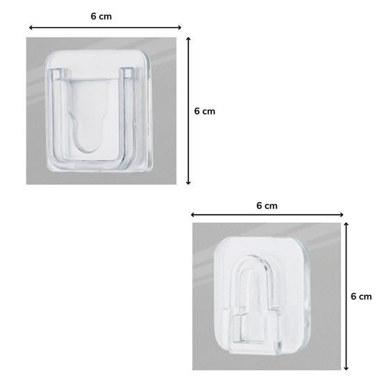BUFFER® Eşya Sabitleme Askısı 10 Çift Şeffaf Çift Taraflı Yapışkanlı Geçmeli Klips