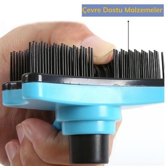 Otomatik temizlenen tuşlu kedi köpek tarama fırçası, köpeklerinizin istenmeyen ve fazla uzamış tüylerini taradıktan sonra rahat ve kolay bir biçimde sıyırmaya yarayan bir alettir Üstte bulunan tuşa bastığınızda telli kısımlarının çıktığı bir tarak olan bu alet, ev hayvanlarınızın karışan tüylerini kolaylıkla açabilmektedir Bununla birlikte tellerin mekanizmanın içine geri girmesiyle, taranılan tüylerden dökülenler de kolayca çöpe atılabilmektedir