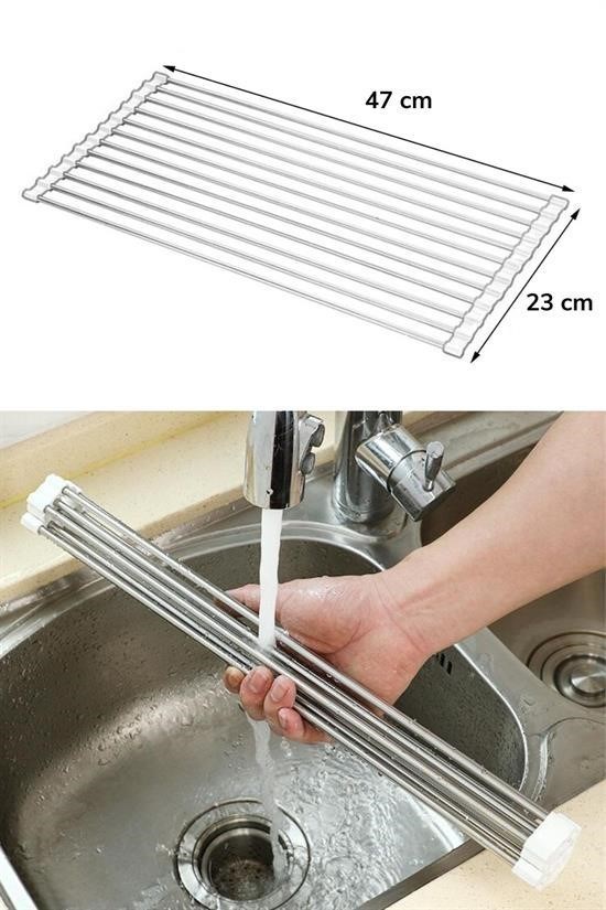 BUFFER® Evye Üstü Katlanır Nihale Paslanmaz Çelik Pratik Sebze Meyve Bulaşık Kurutma Süzgeci