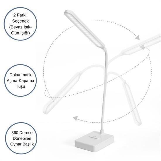 BUFFER® İnce Uzun USB Şarjlı Dokunmatik 3 Kademeli 360 Derece Dönebilen Özel Göz Korumalı led Lityum Masa Lambası