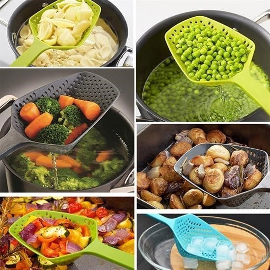 Isıya Dayanıklı Plastik Süzgeçli Kepçe /Kızartma ve Sebze Haşlamak için Çok Amaçlı Süzgeçli Kepçe