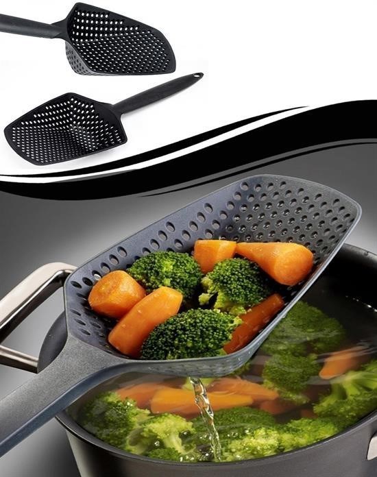 BUFFER® Isıya Dayanıklı Plastik Süzgeçli Kızartma ve Sebze Haşlama Kepçesi