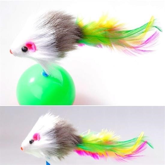 Kedi Oyun Topu Tüylü Fareli Hacı Yatmaz Eğitici Yavru Kedi Fare Kovalama Oyuncağı