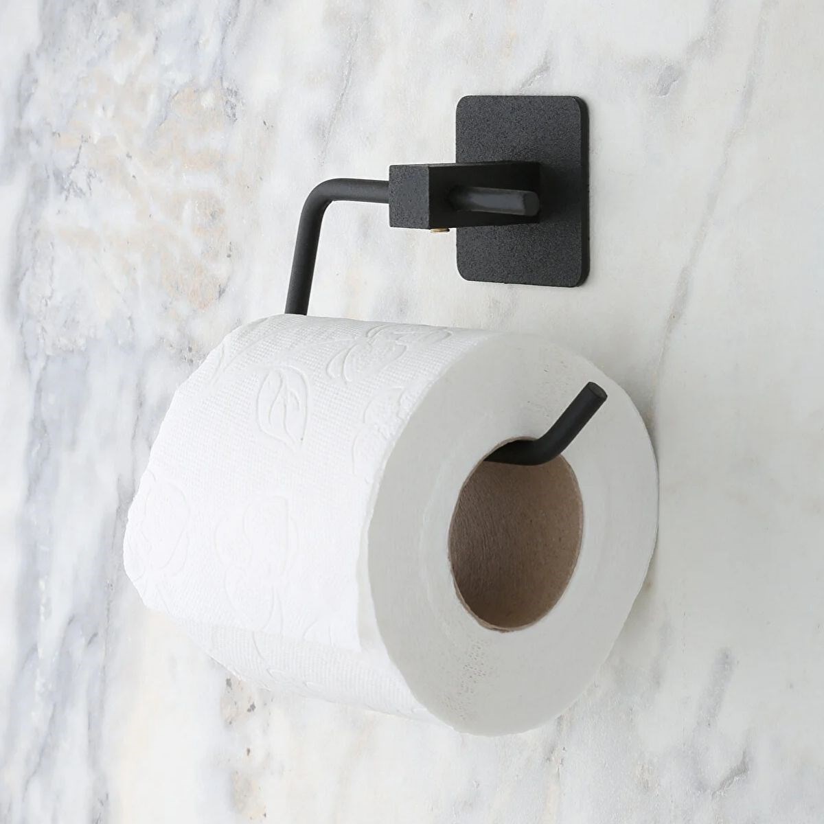 BUFFER® Kendiliğinden Yapışkanlı Siyah Paslanmaz Metal Kapaksız Tuvalet Kağıtlığı Aparatı