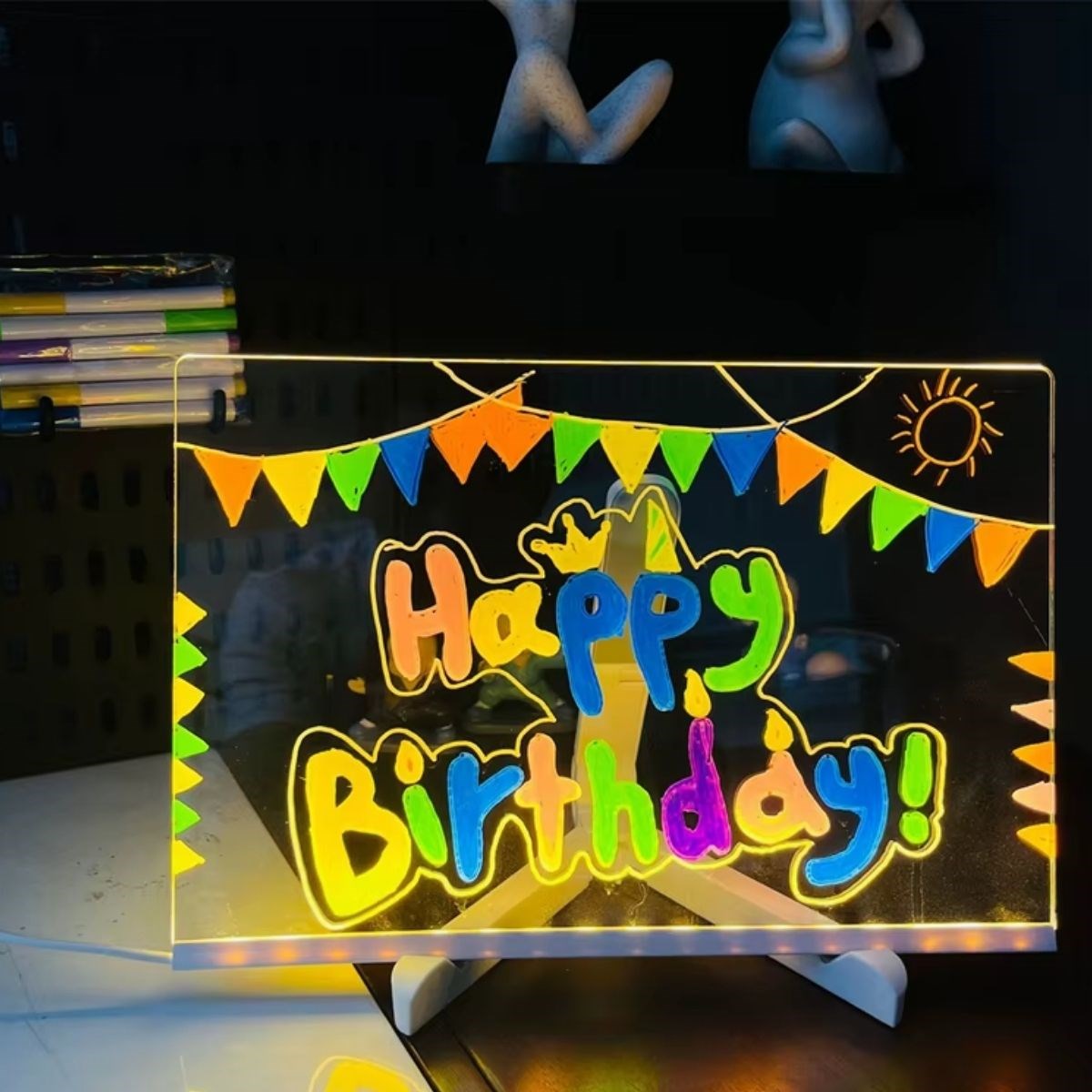 BUFFER® LED Işıklı Renkli Kalemli Yazı Panosu – 20x30 cm | Dikdörtgen Tasarım