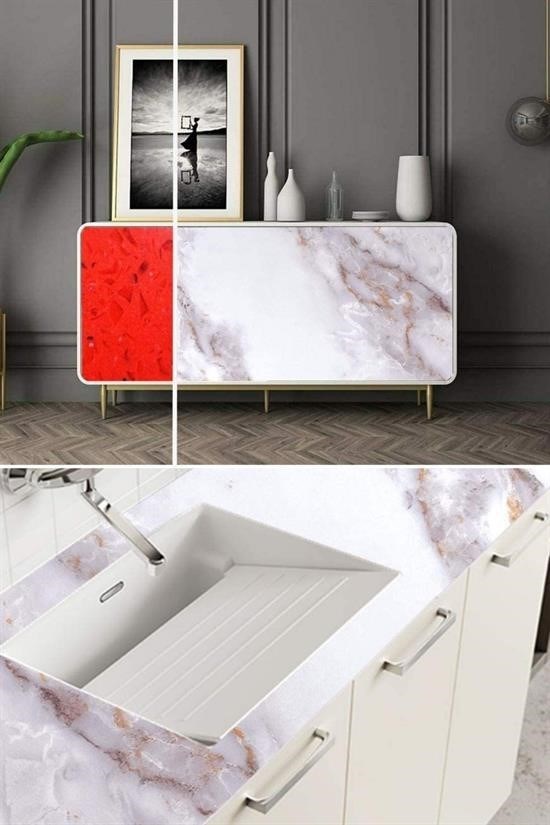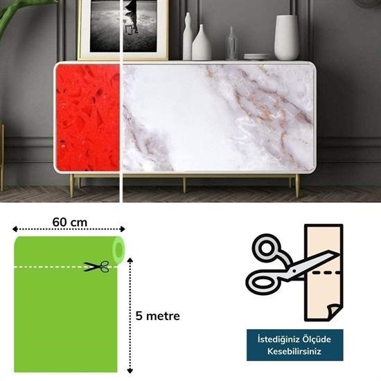 Mermer desenli yapışkanlı folyo ürünüyle birlikte evinizde şık ve modern bir görünüm sağlayabilirsiniz