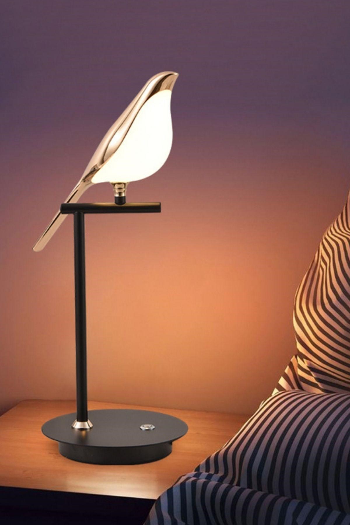 BUFFER® Saksağan Kuş Modeli Tekli Dokunmatik Aydınlatma Masa Üstü Gece Lambası Göz Korumalı Abajur