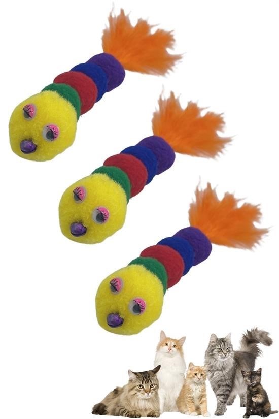 BUFFER® Yumuşacık İpli Tırtıl Şeklinde Rengarenk Sevimli Evcil Hayvan Oyuncağı