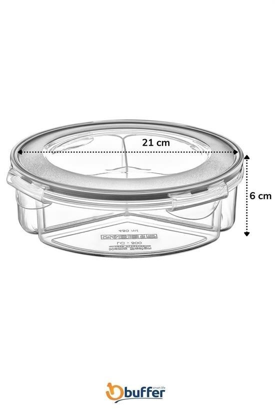 BUFFER® 3 Bölmeli Kilitli Kapaklı 1,35 Litre Yuvarlak Erzak Saklama Kabı Diyet Saklama Kabı Taşınabilir Beslenme Kabı
