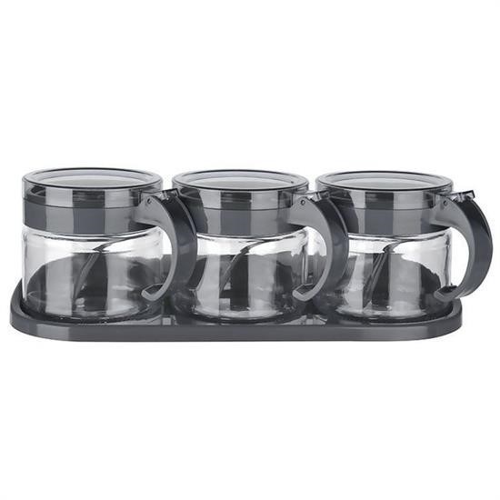 3'lü bir şekilde set olan BUFFER® Gri 3'lü Standlı Kaşıklı Cam Baharatlık Takımı 1Sınıf Cam malzemeden üretilmiştir